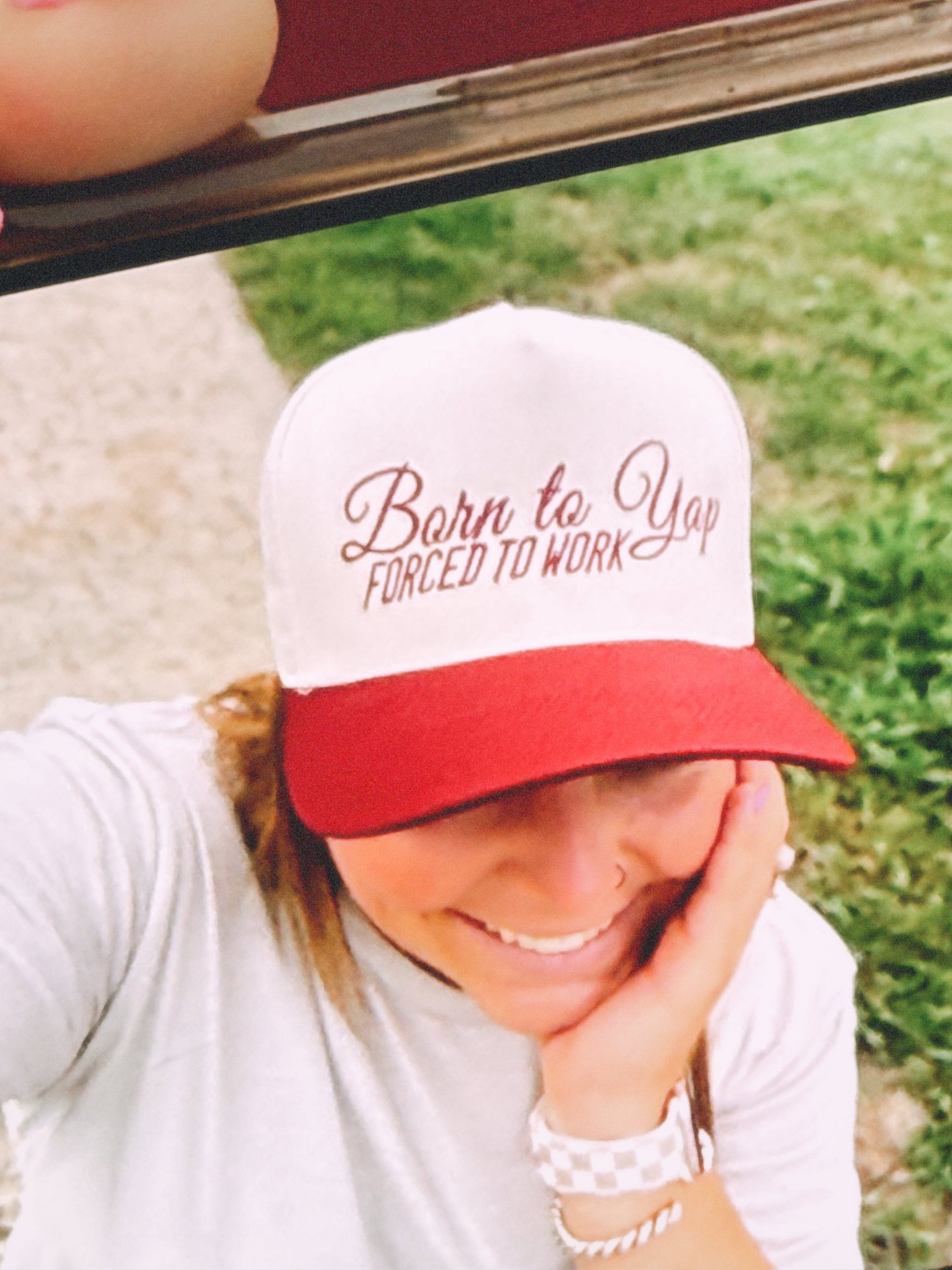 OTTO 5 PANEL HAT. RED WINE BILL IVORY CANVAS. EMBROIDERED.