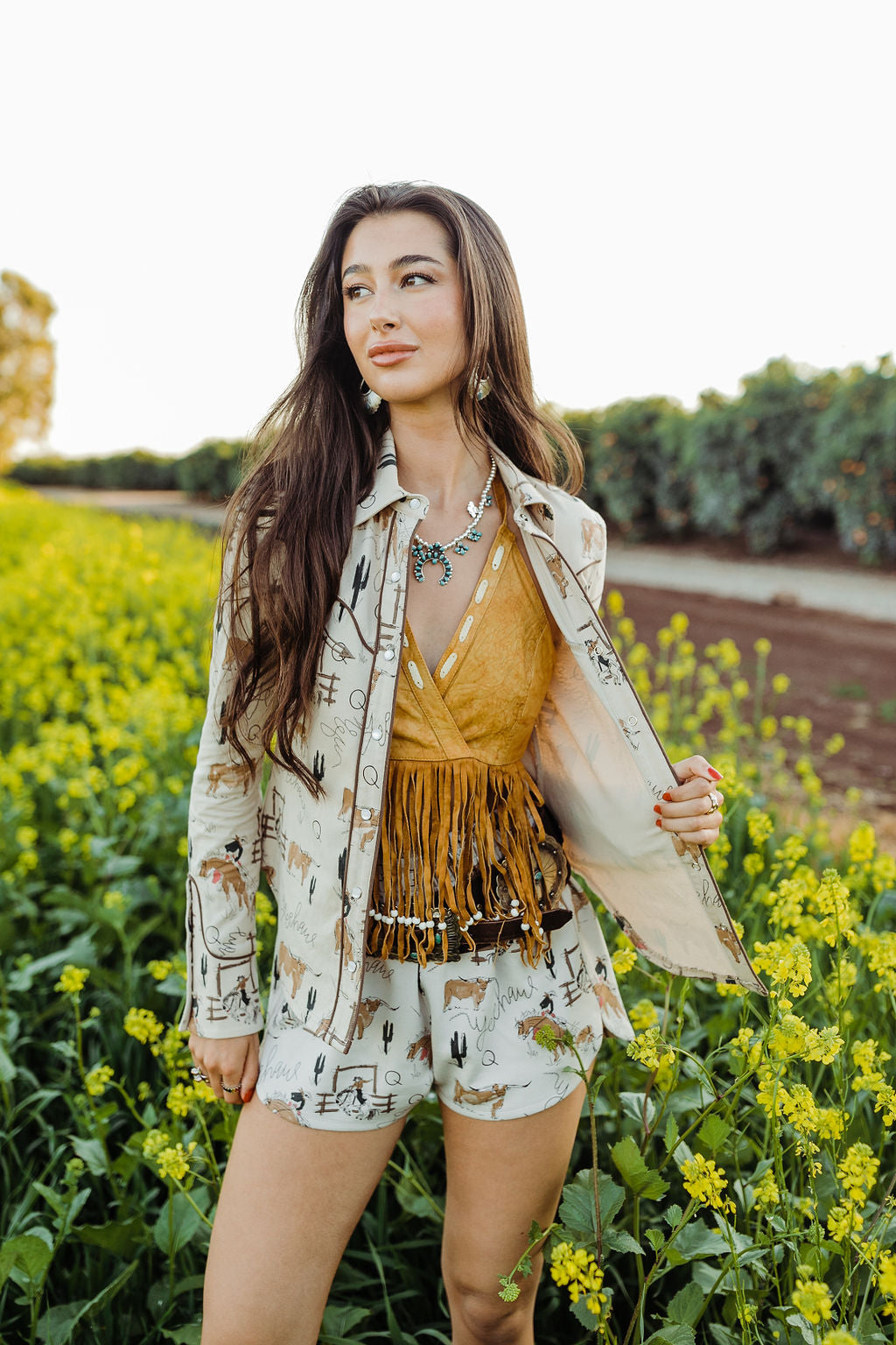 Introducing the Yeehaw Button Up, your go-to choice for summer branding. Stay comfortable and cool in this lightweight and breathable button-up with soft fabric and pearl snaps. Perfect for staying stylish and comfortable even in warm weather.